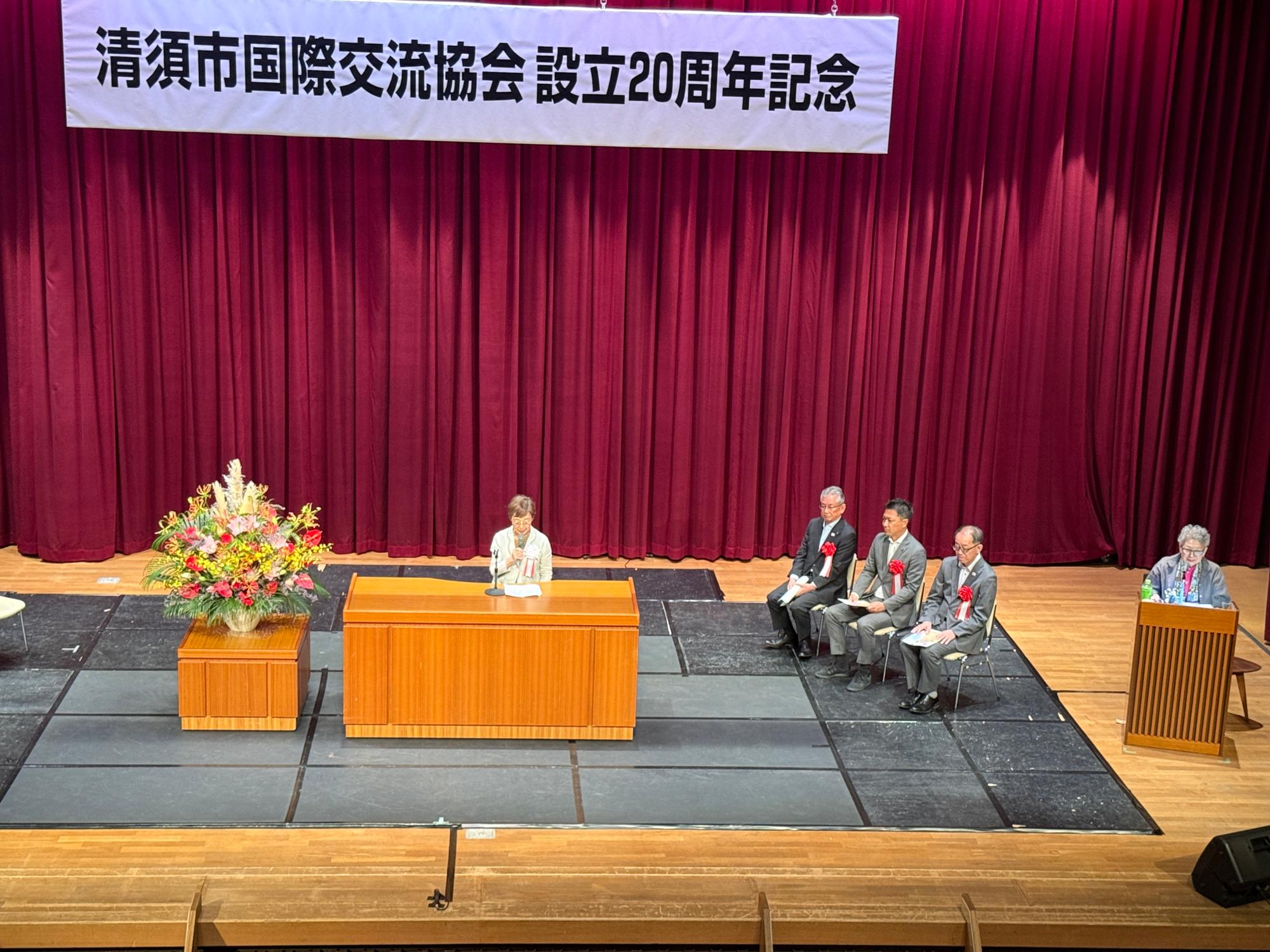 令和7年9月28日(日) 清洲市民センター ホールで午後1時30分から、清須市国際交流協会 設立20周年記念イベントを開催しました。永田市長、成田市議会議長、天埜教育長にご臨席を賜りました 。